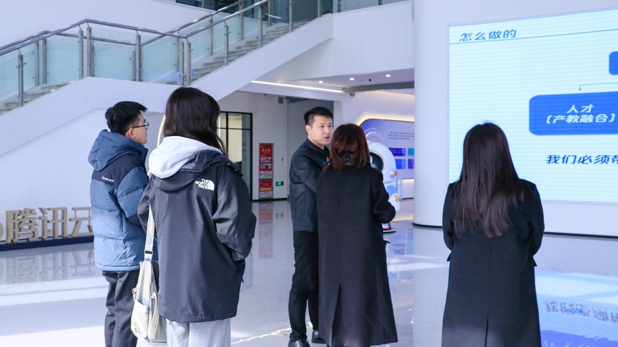 山东融发数字运营有限公司是山东融谷控股有限公司联合济宁市土地发展集团打造的数字经济人才培养示范基地,聚焦数字孪生、3D数字资产、AIGC等核心领域,构建了三位一体的产教融合新范式。在企业部门负责人陪同下,杭颖颖一行实地参观了管培生培养园区的教学实训场地、产业交付中心及住宿环境,详细了解企业人才培养模式,对企业将产业项目与人才培养深度结合的模式给予高度认可。