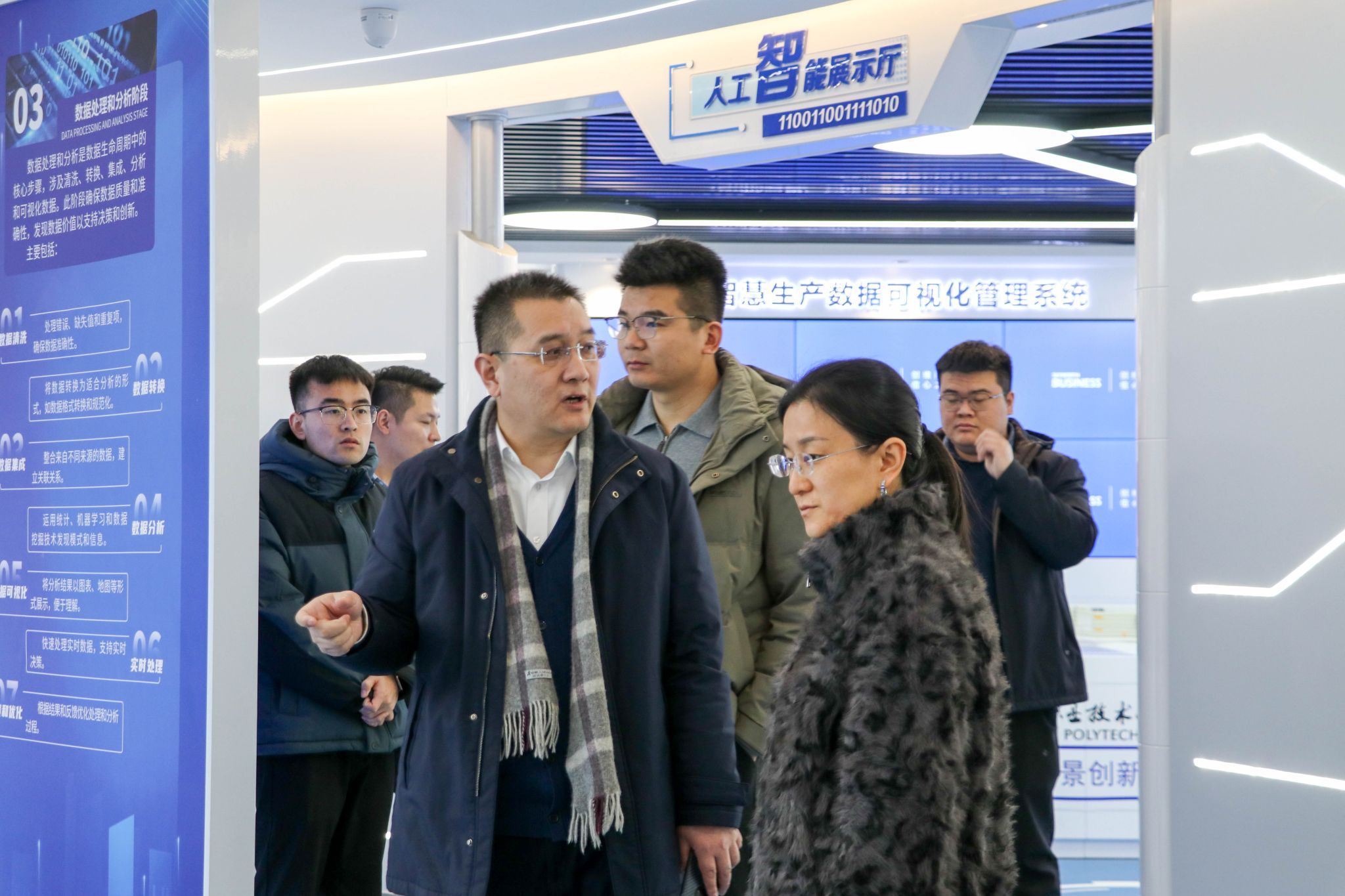 山东融谷信息科技有限公司高级副总裁张振龙带领学校一行参观了基地展厅、园区、产业实训中心、产业交付中心,并探望了在岗实践的学生。张海园老师与刘絮老师,与学生们展开了亲切深入的交流。两位老师细致询问了大家进入企业后的工作适应情况、岗位技能的应用实践的收获,以及在职业发展初期遇到的困惑与挑战。