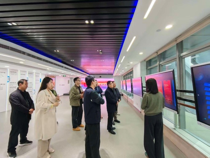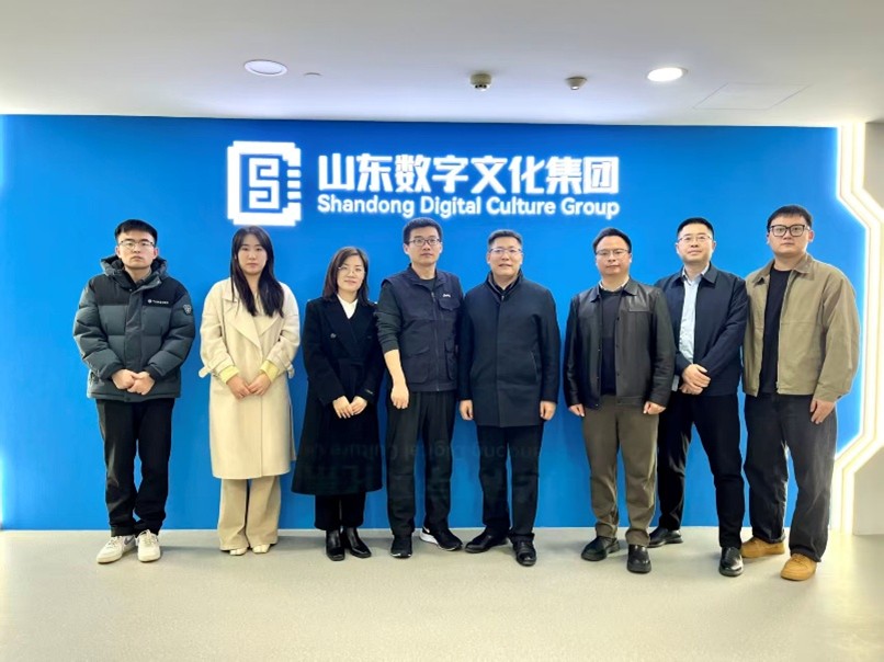 座谈交流前,校方一行在集团相关负责人陪同下,共同观看了山东数字文化集团宣传片,并参观了集团数智展厅,全面了解集团的发展历程、业务布局、核心优势以及在文化数字化领域的创新成果,直观感受集团在推进文化与科技深度融合方面的实践与探索。